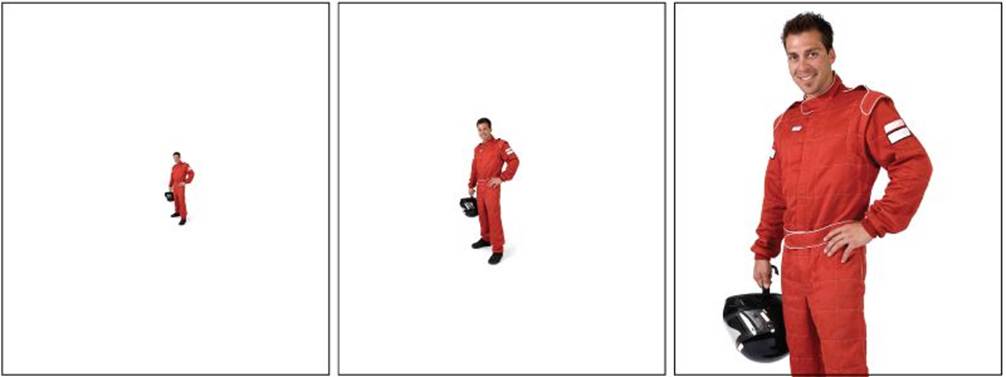 Для наглядности рассмотрим конкретный пример. На картинке ниже один и тот же человек снят так, что его изображение занимает 20%, 40% и 140% от высоты кадра. В первом случае система видеоаналитики сможет обнаружить движущийся объект, во втором — однозначно распознать в нем человека, а в третьем — провести идентификацию по лицу.