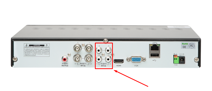 Аудиовходы предназначены для подключения периферийных микрофонов. Количество гнезд для записи звука ограничено числом каналов для коммутации камер. Т.е. максимальное количество микрофонов, связанных с видеорегистратором, идентично числу установленных камер. Часто DVR оснащают только одним каналом для записи аудио, или эта возможность вообще отсутствует. При организации видеозаписи со звуком необходимо изучить правовой аспект вопроса. Законодательство некоторых стран ограничивает использование этой технологии. Аудиовыход используется для подключения колонок. Если DVR оснащен звуковым входом и выходом, можно организовать двухстороннюю голосовую связь с трансляцией изображения, как в видеодомофоне.