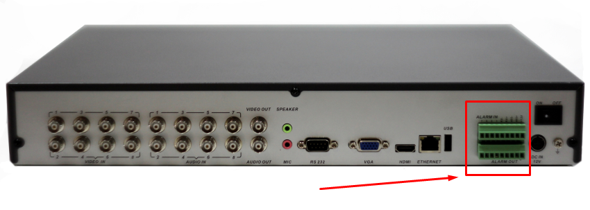 Интерфейсы RS-485 предназначены для подключения и управления работой периферийных датчиков, вызывающих срабатывание сигнала о тревожной ситуации. Чаще всего это детекторы движения, изменения уровня фонового шума или пожарной сигнализации. Получение сигнала с датчика дает команду видеорегистратору на начало записи видео с камеры, фиксирующей окрестности сработавшего детектора.