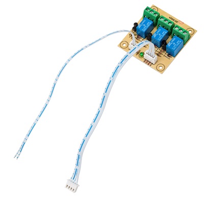 Универсальная релейная плата на 3 выхода. Преобразует сигналы типа «открытый коллектор» в сигналы типа «сухие контакты реле». Может использоваться с электромагнитными замками для преобразования сигнала датчика Холла в релейный выход и для решения аналогичных задач. Количество входов: 3, количество выходных реле: 3 (полная группа контактов каждого реле). Тип входного сигнала: открытый коллектор. Входное напряжение: 12 В ±10%. Нагрузочная способность реле: 3 А при 30 В DC или 250 В АС. Питание 12 В. Шлейф с разъемами для подключения к ББП серии ТР в комплекте. Габаритные размеры платы: 60х55х16 мм