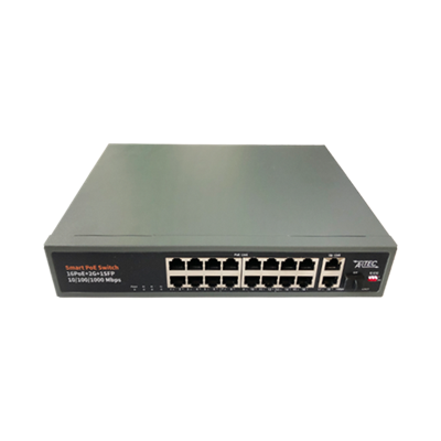 Сетевой POE коммутатор на 16 портов RJ45+ 2 порта uplink 1000Мб, 1SFP оптоволоконная сеть  1000Mб, с поддержкой технологии PoE (питание по Ethernet кабелю). Стандарт POE: IEEE 802.3af/at адаптивный. Бюджет питания: 250ВТ.Грозозащита: до 4КВт. Размеры:270 x 180х44 мм. 100~240В AC,50/60Гц.
