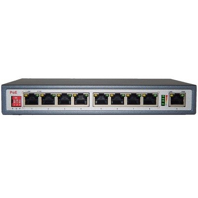 Сетевой РоЕ коммутатор 8 портовый неуправляемый; 8xPoE 10/100 RJ45; 1xUplink 10/100Base-TX RJ45; Суммарная мощность РоЕ 110 Вт; DC 48-57 В; IP20; -20...+55°C; 191х108x29 мм.