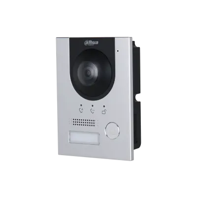 Вызывная видеопанель для IP домофонной системы; строенный громкоговоритель; Двустороннее аудио; Дистанционная разблокировка; 1 кнопка выхода; Управление замком:1; Угол:168.6°; Аудио:1 Вх.; RS-485:1; Защита:IK07; IP65; Источник питания:12 VDC, 2 A, PoE; Размеры:130 мм × 96 мм × 28.5 мм; Вес:0.48 кг.; Цвет:Серебристый.