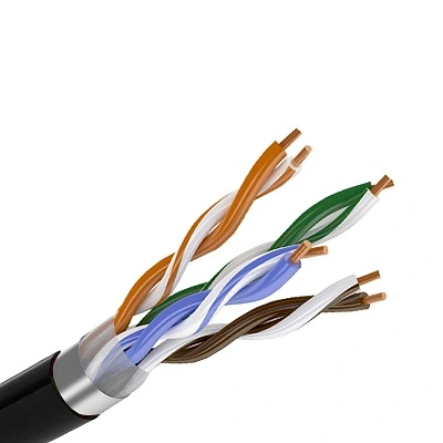 Кабель Optimus FTP (экранированная витая пара, материал экрана алюминиевая фольга) 4 пары, категории 5e, для внешней прокладки. Кабель состоит из 4х пар одножильных проводников из высокоочищенной бескислородной меди, диаметром 0,51мм (24AWG), заключенных в ПЭ оболочку.