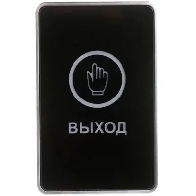 Сенсорная кнопка выхода, накладная, 2-цветная подсветка, 12В, полная группа (НО/НЗ), 86х50х20мм, цвет – черный.