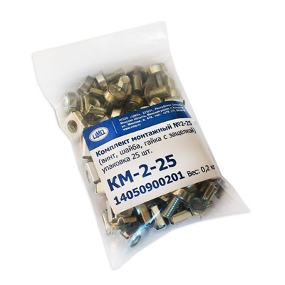 Комплект монтажный: Винт М6х12(полусфера) – 25 шт.; Гайка с защелкой (клетьевая) М6 - 25 шт.; Шайба (металл) М6 - 25 шт.