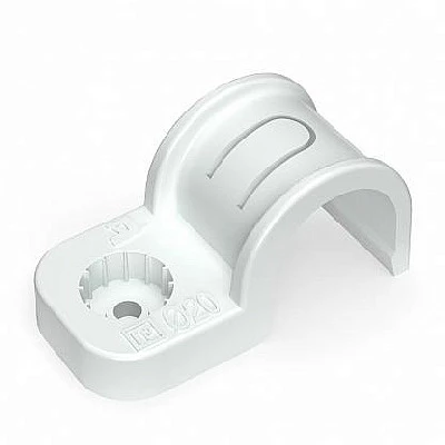 Крепеж-скоба пластиковая односторонняя для прямого монтажа атмосферостойкая белая в п/э d20 мм (50шт/600шт уп/кор) (PR13.0377)