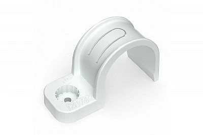 Крепеж-скоба пластиковая односторонняя для прямого монтажа атмосферостойкая белая в п/э d25 мм (50шт/450шт уп/кор) (PR13.0378)