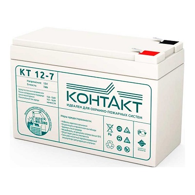 Бюджетная свинцово-кислотная герметизированная аккумуляторная батарея Контакт КТ 12-7, с напряжением 12 В, ёмкостью 7 Ач. Технология изготовления AGM с абсорбированным электролитом в стекловолоконном сепараторе, идеальны для использования в охранно-противопожарных, а также мелком слаботочном оборудовании (фонари, ККМ, весы). Необслуживаемая VRLA батарея производителя Контакт- лучшее соотношение цены и качества, оптимальны для использования как в циклическом, так и в буферном режиме, но буферный режим эксплуатации более предпочтителен. Расчетный срок службы 3-5 лет.