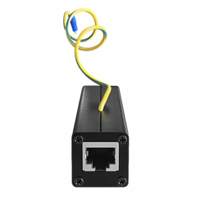 Устройство грозозащиты линий Ethernet + PoE на 1 канал (УЗИП). Класс II. Защищает PoE оборудование, подключенное к линиям Ethernet от наведенного напряжения высоких энергий. Скорость передачи данных: 10/100/1000 Мбит/c. Стандарты PoE: IEEE802.3 af/at/bt до 90W. Защищаемые контакты: 1-8. Номинальное рабочее напряжение Un - 48V DC. Максимльное рабочее напряжение Um - 60V DC. Номинальный ток разряда  In - до 5kA. Максимльный ток разряда Imax - до 10kA. Время отклика - до 1нс. Вход - Розетка RJ45, Выход - Розетка RJ45. Заземление - клеммная колодка. Материал корпуса - пластик. Размеры (ШxВxГ): 18 x 90 x 62 мм. Монтаж на DIN-рейку. Рабочая температура: -40…+85°С.