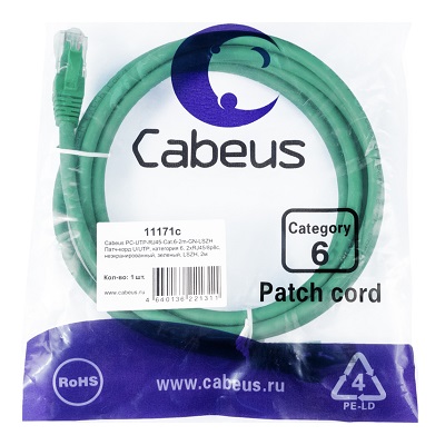 —PC-UTP-RJ45-Cat.6-2m-GN-LSZH Cabeus Патч Корды