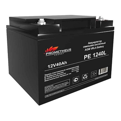 Prometheus Energy свинцово-кислотный аккумулятор PE 1240L создан по технологии AGM, с абсорбированным электролитом. Предлагаемый аккумулятор является не обслуживаемым. Он герметизирован, а образующийся газ рекомбинируется. Долив жидкости не требуется. Корпус аккумулятора изготовлен из негорючего ABS пластика. Емкость аккумуляторной батареи для ИБП составляет 40 Ah, а рабочее напряжение 12 V. Устройство обладает низким саморазрядом (до 3%).