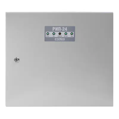 24 В; 4 А (мах 5 А); емкость АБ 40 Ач; световая индикация; звуковая сигнализация; датчик вскрытия корпуса; защита: от перенапряжения, от КЗ, от переполюсовки АБ; интерфейс RS-485.
