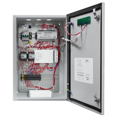 Шкаф управления задвижкой, автоматическое и ручное управление устройствами мощностью до 4 кВт, два входа технологической сигнализации, два интерфейса RS485, корпус  IP54.