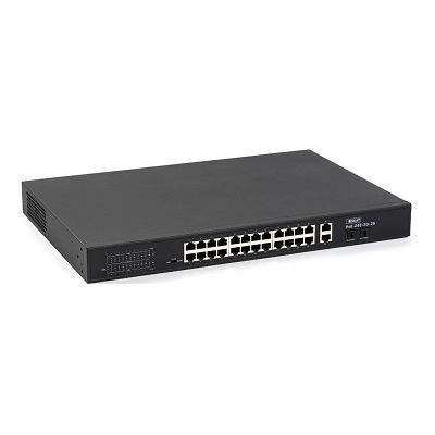 Неуправляемый PoE-коммутатор «Бастион» Skat PoE-24E-2G v.2 оборудован двадцатью шестью портами RJ-45: двумя входными гигабитными, двадцатью четырьмя выходными Fast Ethernet с PoE.