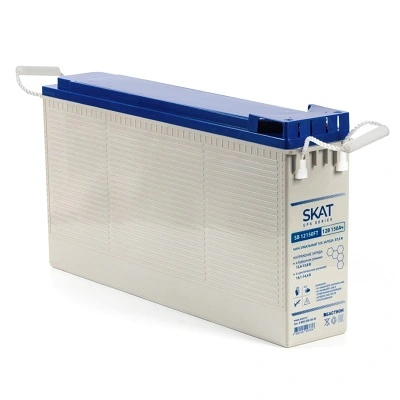 Аккумулятор герметичный свинцово-кислотный необслуживаемый SKAT SB 12150FT, производимый по технологии AGM (Absorbent Glass Mat) с системой рекомбинации газов VLRA, предназначен для использования в составе системы резервного питания.