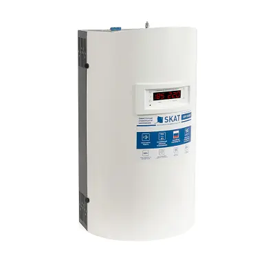 SKAT STP-20000 исп. Н – стабилизатор напряжения с симисторными ключами управления. Качественная элементная база, цифровая индикация, безопасное подключение и революционная форма корпуса.