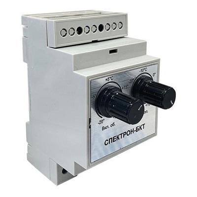 Блок контроля температуры Спектрон Спектрон БКТ-1 с помощью выносного датчика контролирует температуру внутри термошкафа Спектрон-ТШ, Спектрон-ТШ-В или взрывозащищенной коробки Спектрон-КВ-Exd и в зависимости от заданных пользователем параметров подает команды на включение/выключение обогрева или охлаждения (вентилятора).