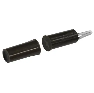 Магнитоконтактный врезной; контакты замыкаются при тревоге; 15 мм (контакты размыкаются), 25 мм (контакты замыкаются); U-коммут.30 В, P-коммут.3 Вт; t-раб.-30…+65°C; 10х22 мм (геркон и магнит). Кабельный отвод. Пластиковый корпус коричневого цвета.