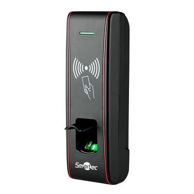 Уличный биометрический считыватель Smartec ST-FR030MFW. Работа под управлением ПО Timex. Невозможно использовать для ввода ОП в базу данных (использовать st-fe200). Разрешение сканера 500 dpi. Память на 5000 шаблонов и 10000 карт, 30000 событий, режим идентификации 1:N, режим верификации 1:1. Интерфесы rs-485, USB, Ethernet. Виганд вход/выход, встроенный считыватель MIFARE, релейный выход, тревожный выход, подключение кнопки выхода и датчика положения двери. Питание 12 В, 0.6 А. Размеры 185х62х41 мм. -40°+60°С, IP65, материал корпуса пластик ABS, цвет черный, накладной