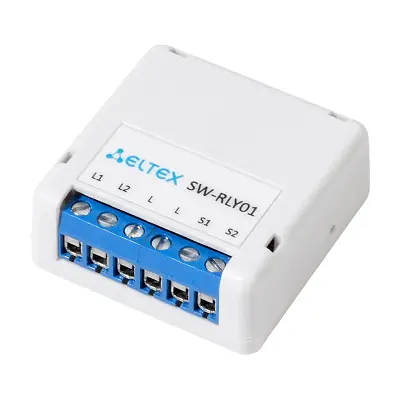 У реле компактный пластиковый корпус, что позволяет устанавливать его в распределительные коробки и подрозетники.