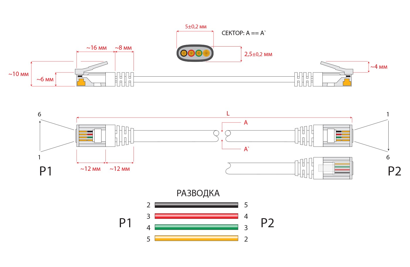 Чертеж PC-UTP-RJ45-Cat.5e-0.5m-RD