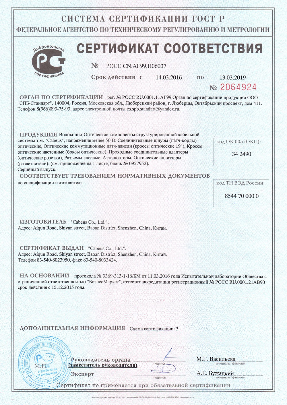 Сертификат PWC-IEC13A-SHM-5.0-BK