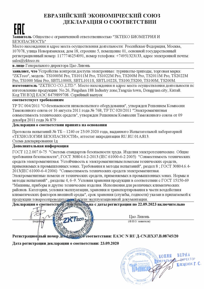 Сертификат TS1000