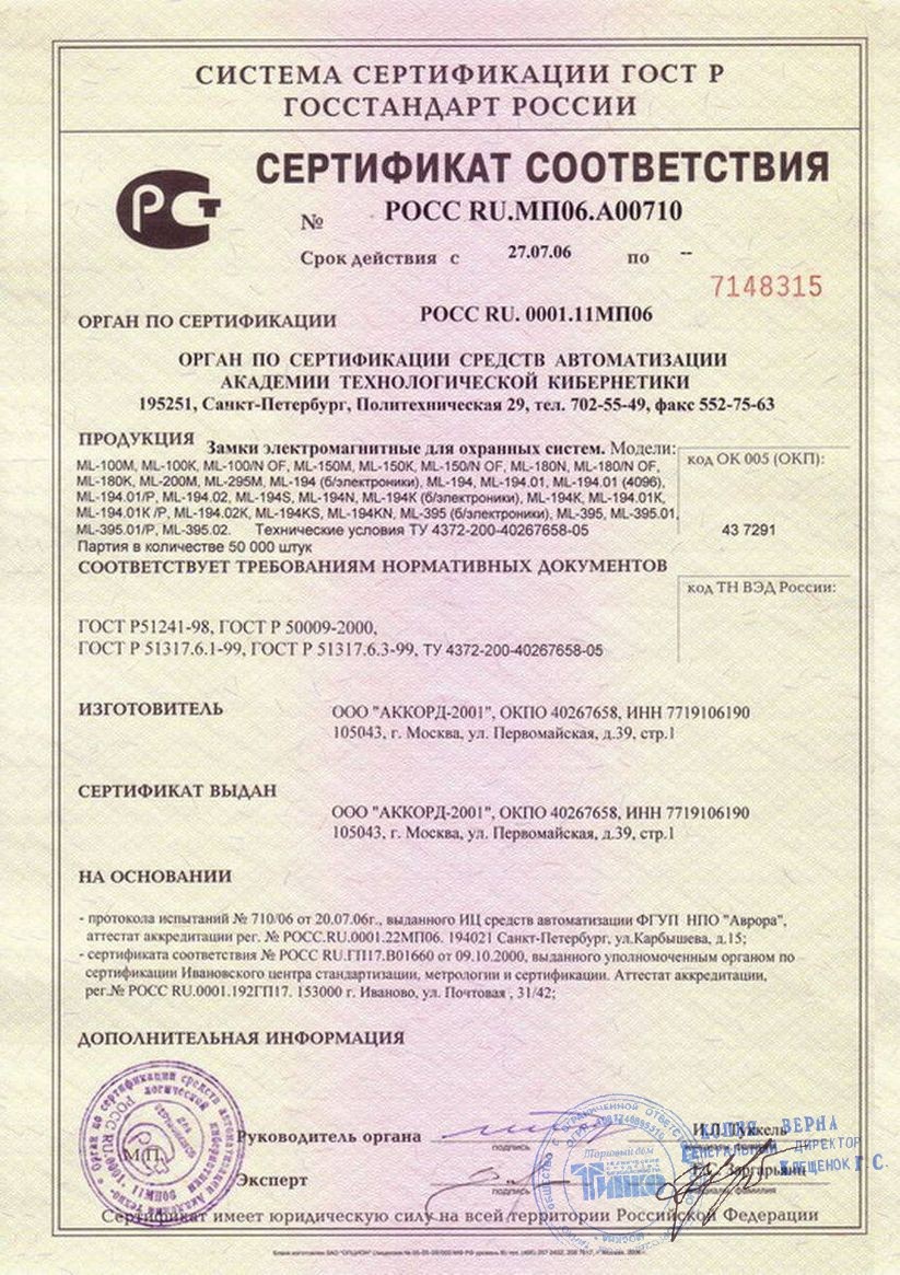 Сертификат LM-194K
