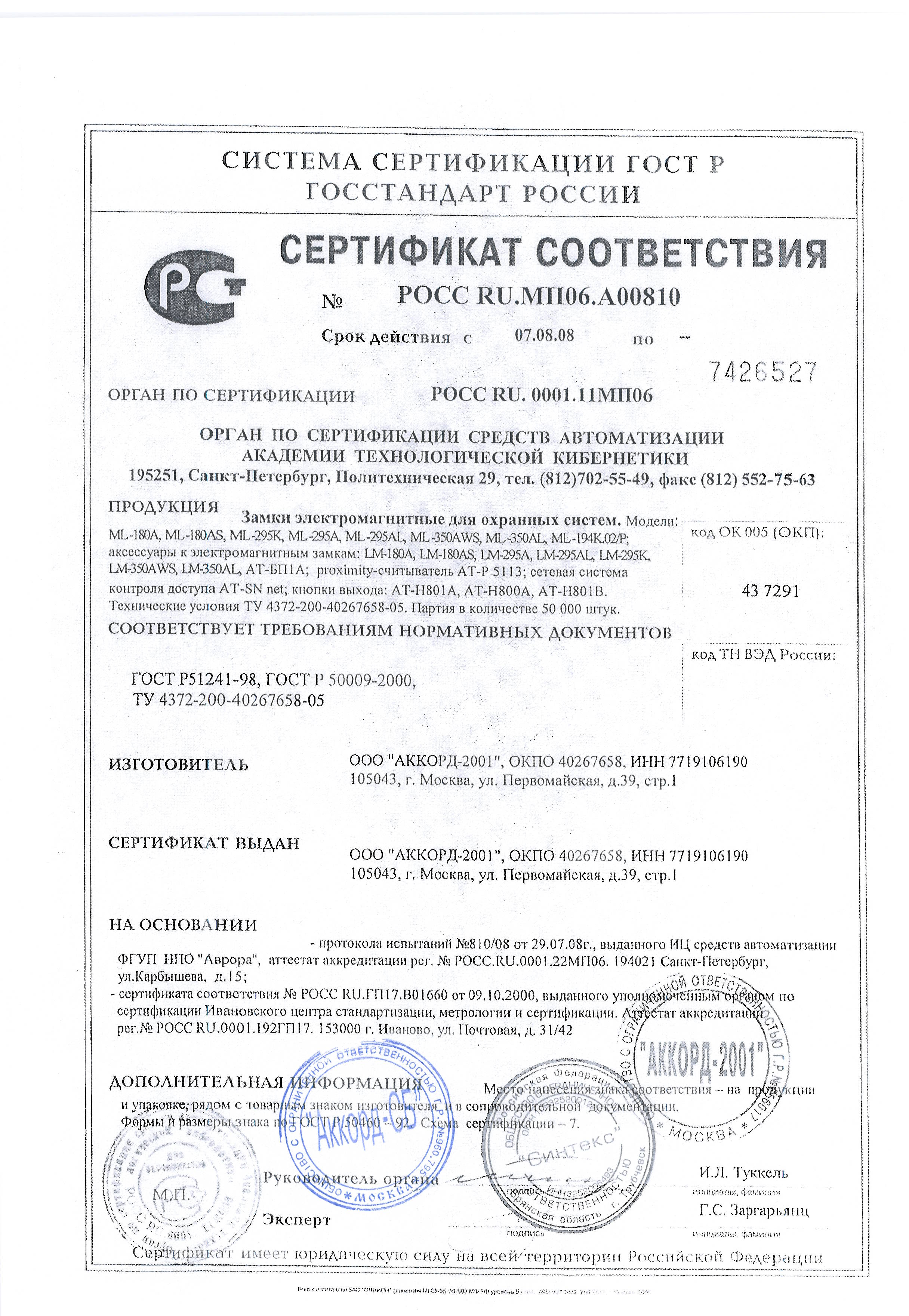 Сертификат TS2000