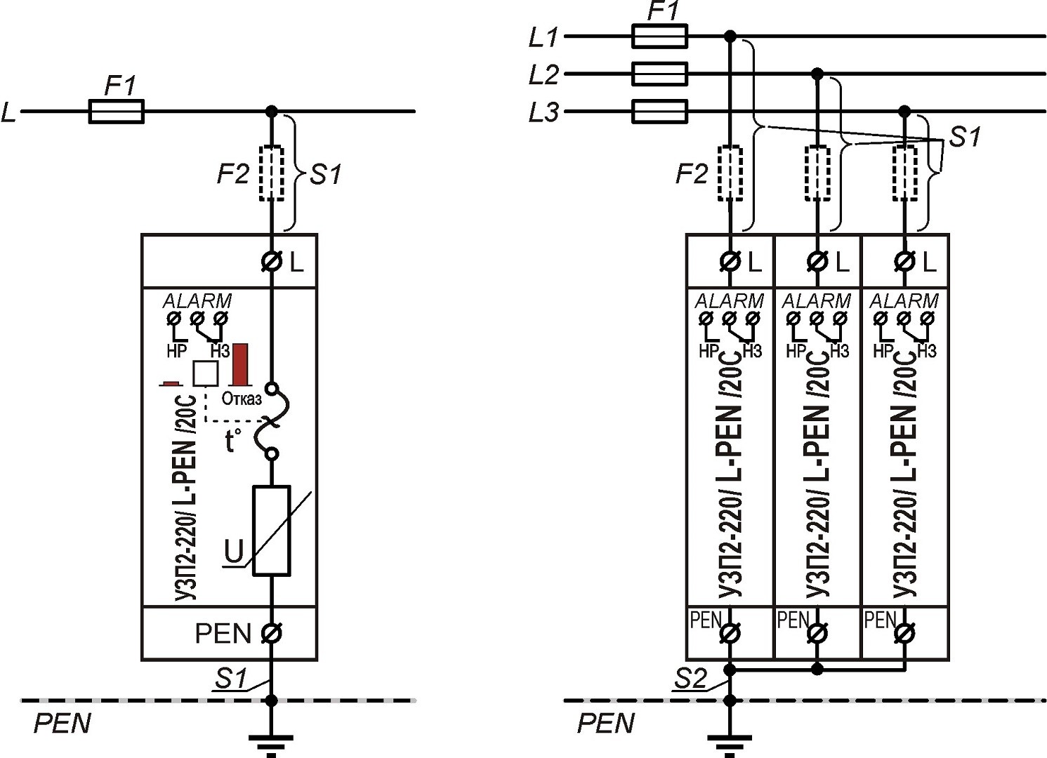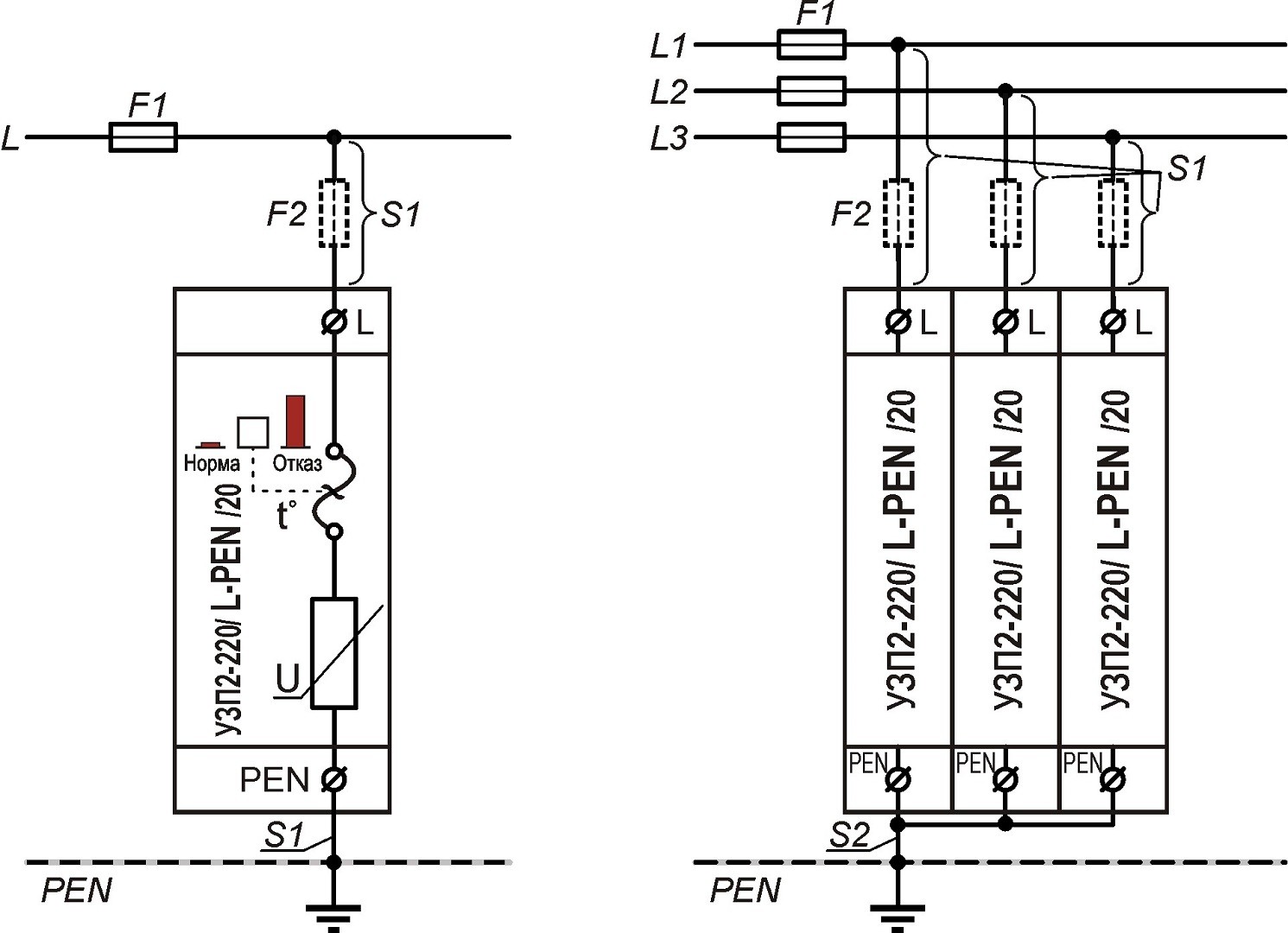 Схема подключения УЗП2-220/L-PEN/20С
