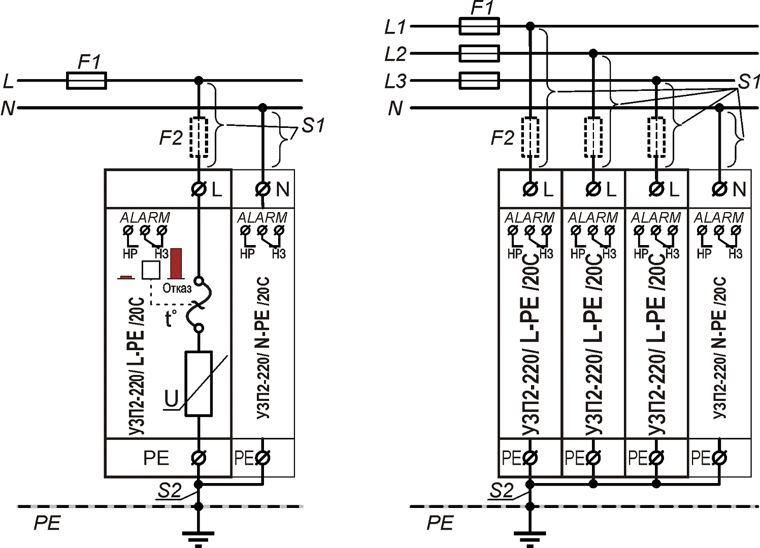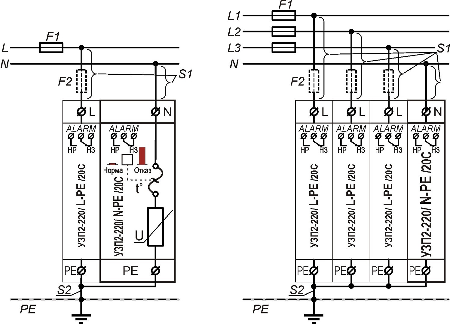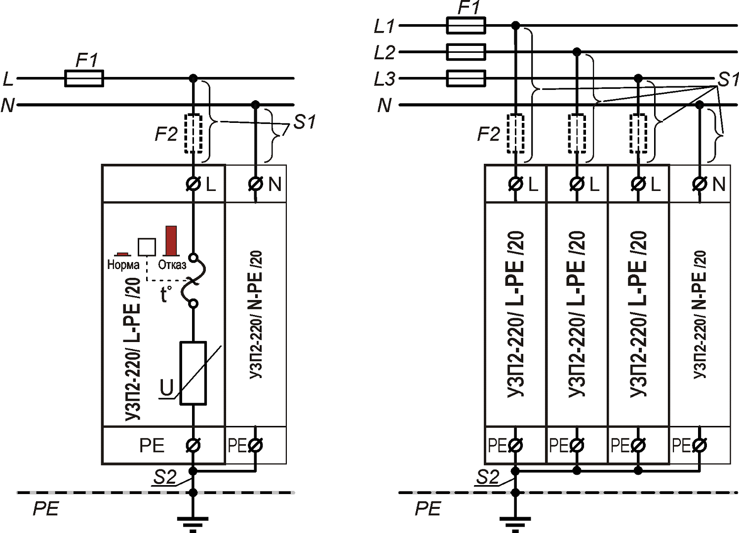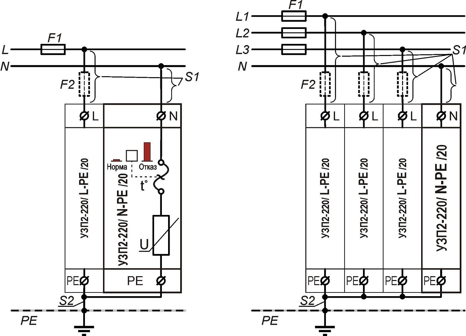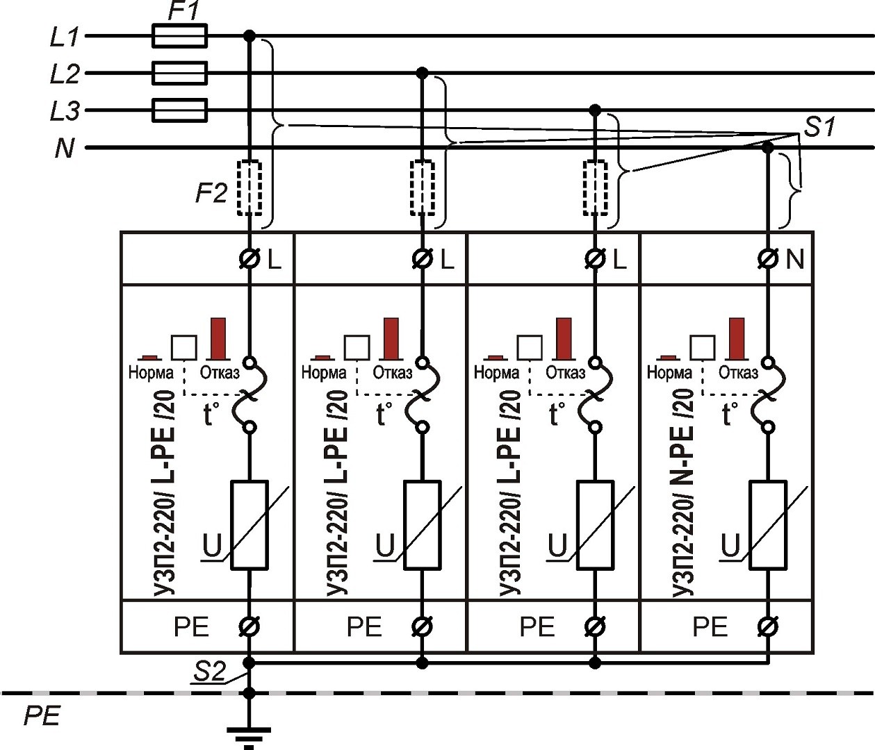 Схема подключения УЗП2-220К/3LN-PE/20С