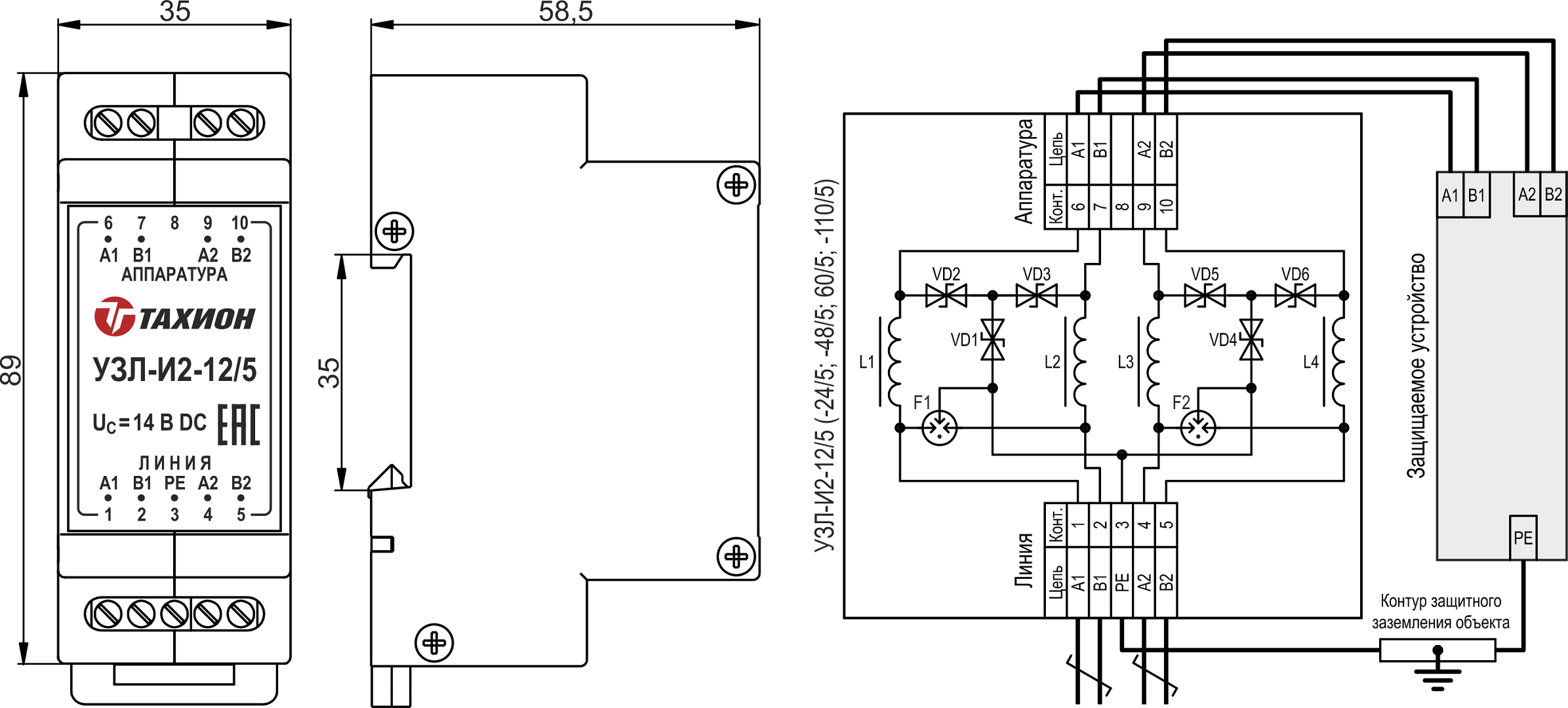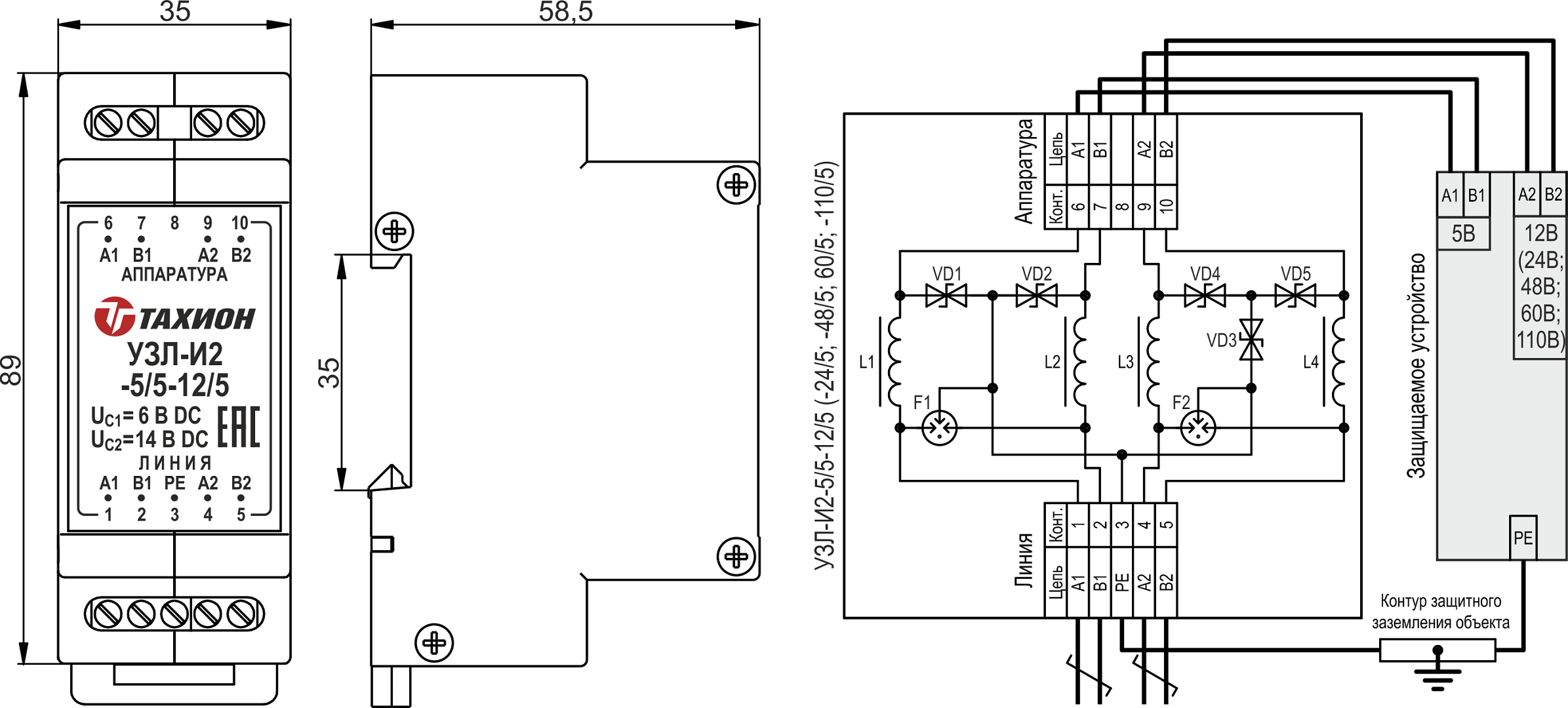 Габаритные размеры УЗЛ-И2-5/5-48/5