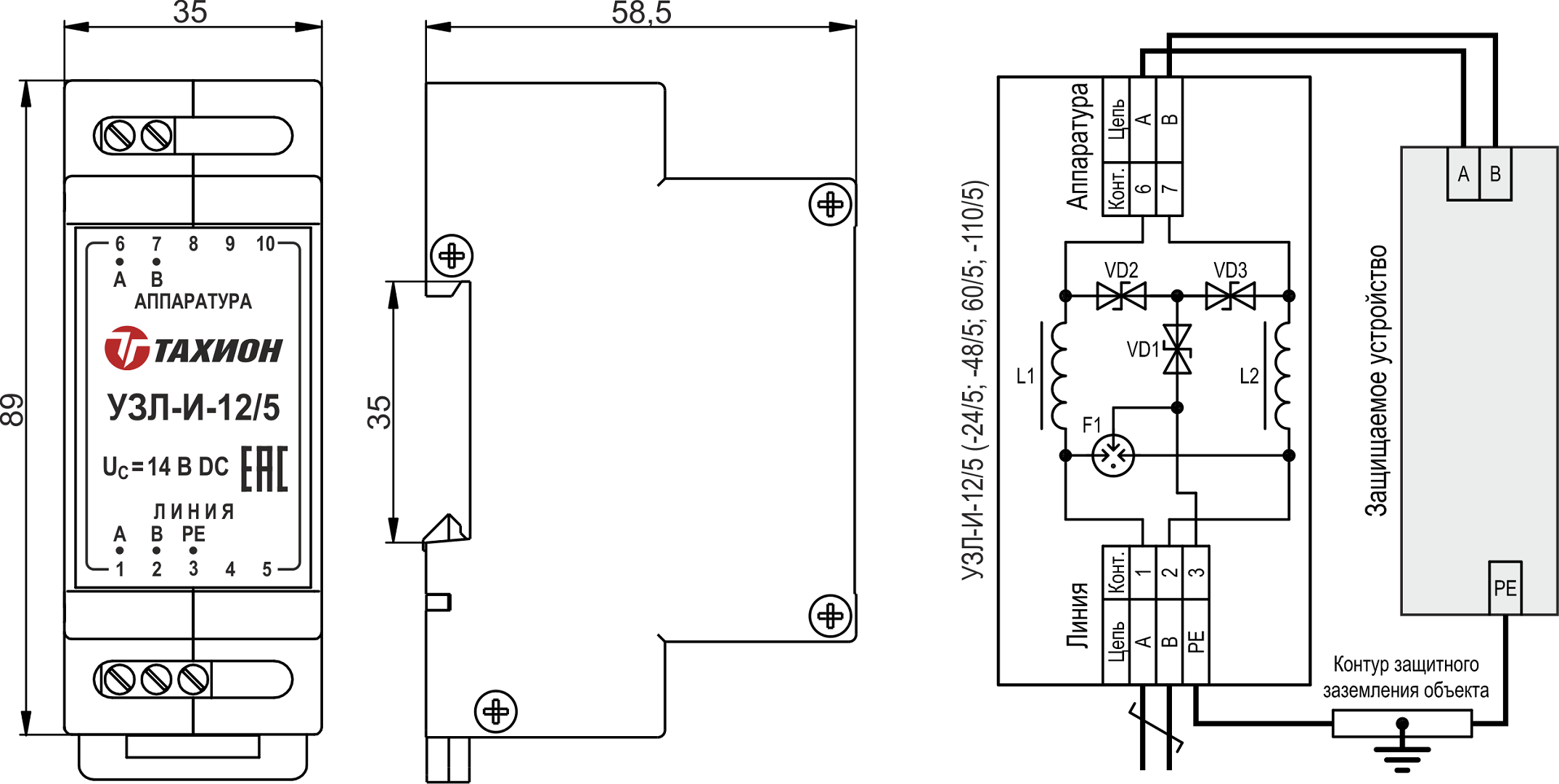 Габаритные размеры УЗП2-220/L-PE/20
