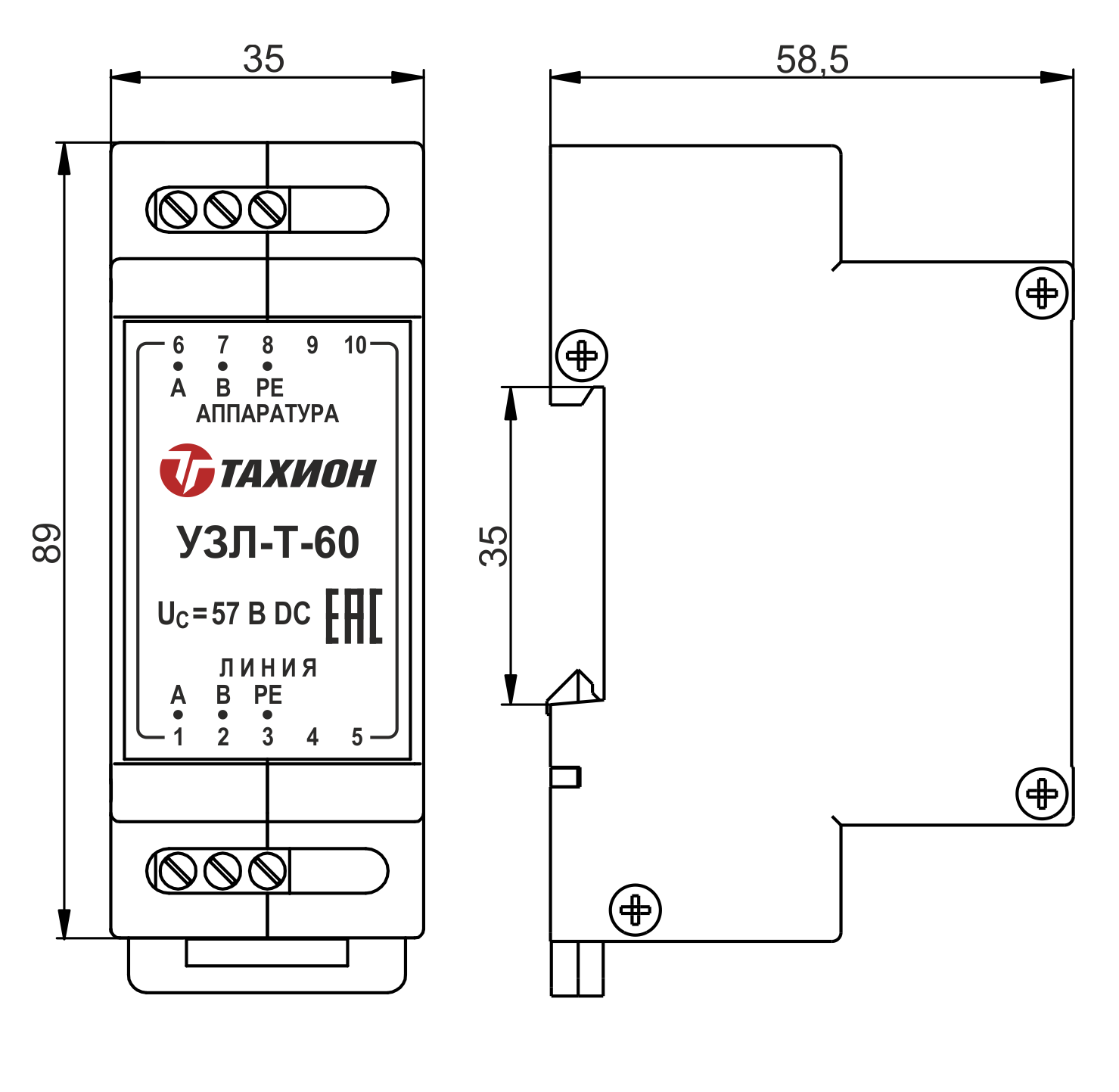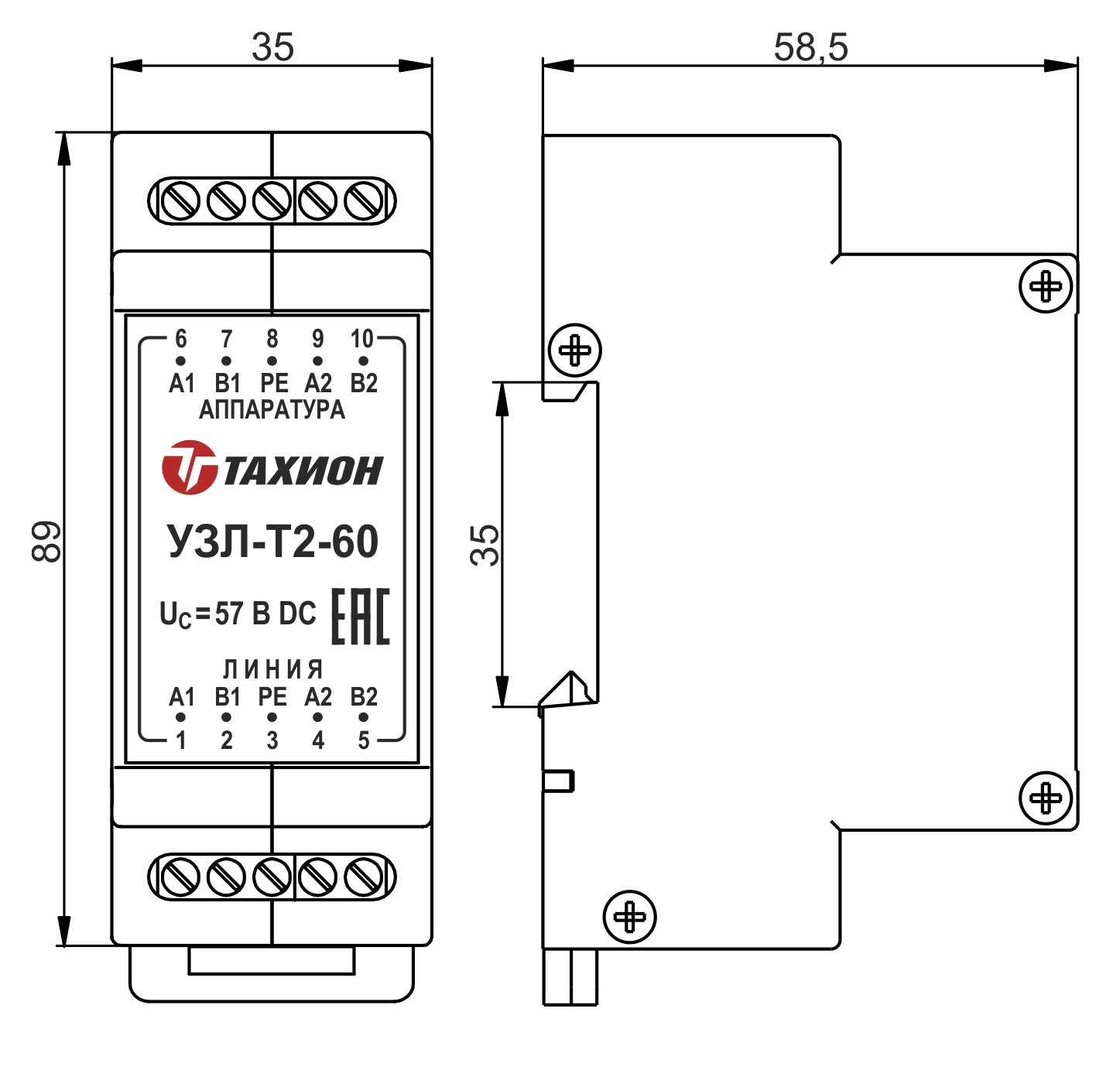 Габаритные размеры УЗЛ-Т2-60