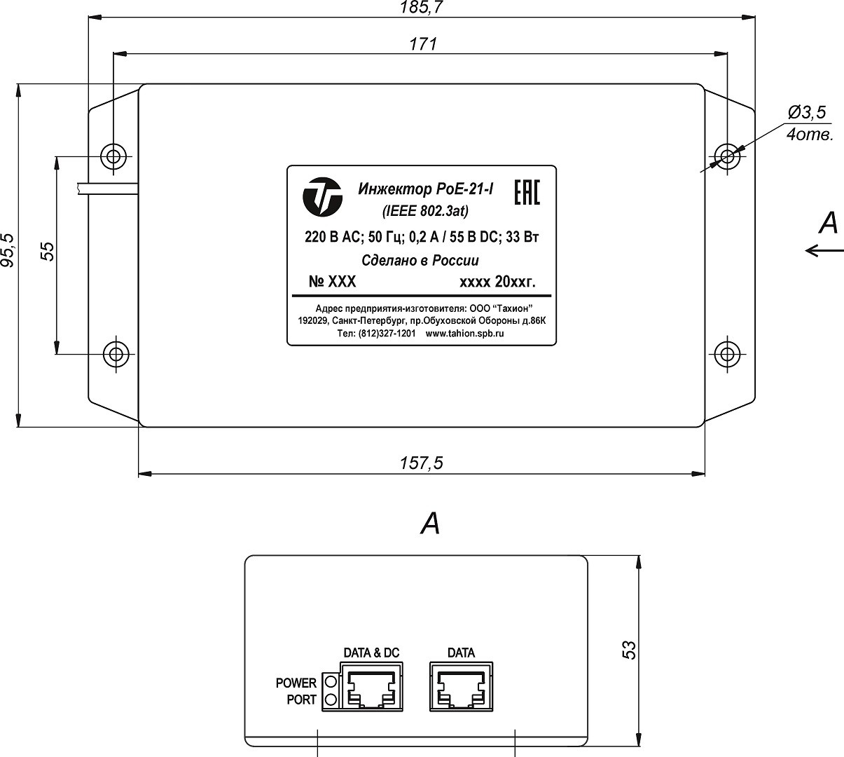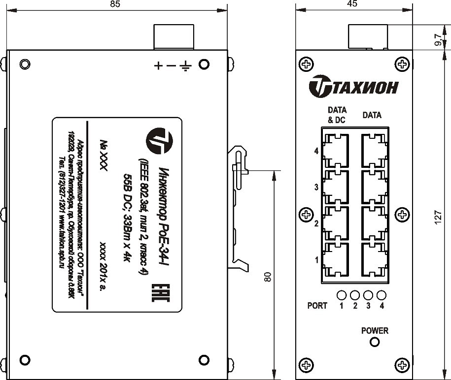 Габаритные размеры КБП-24/1 (24/2, 24/4)