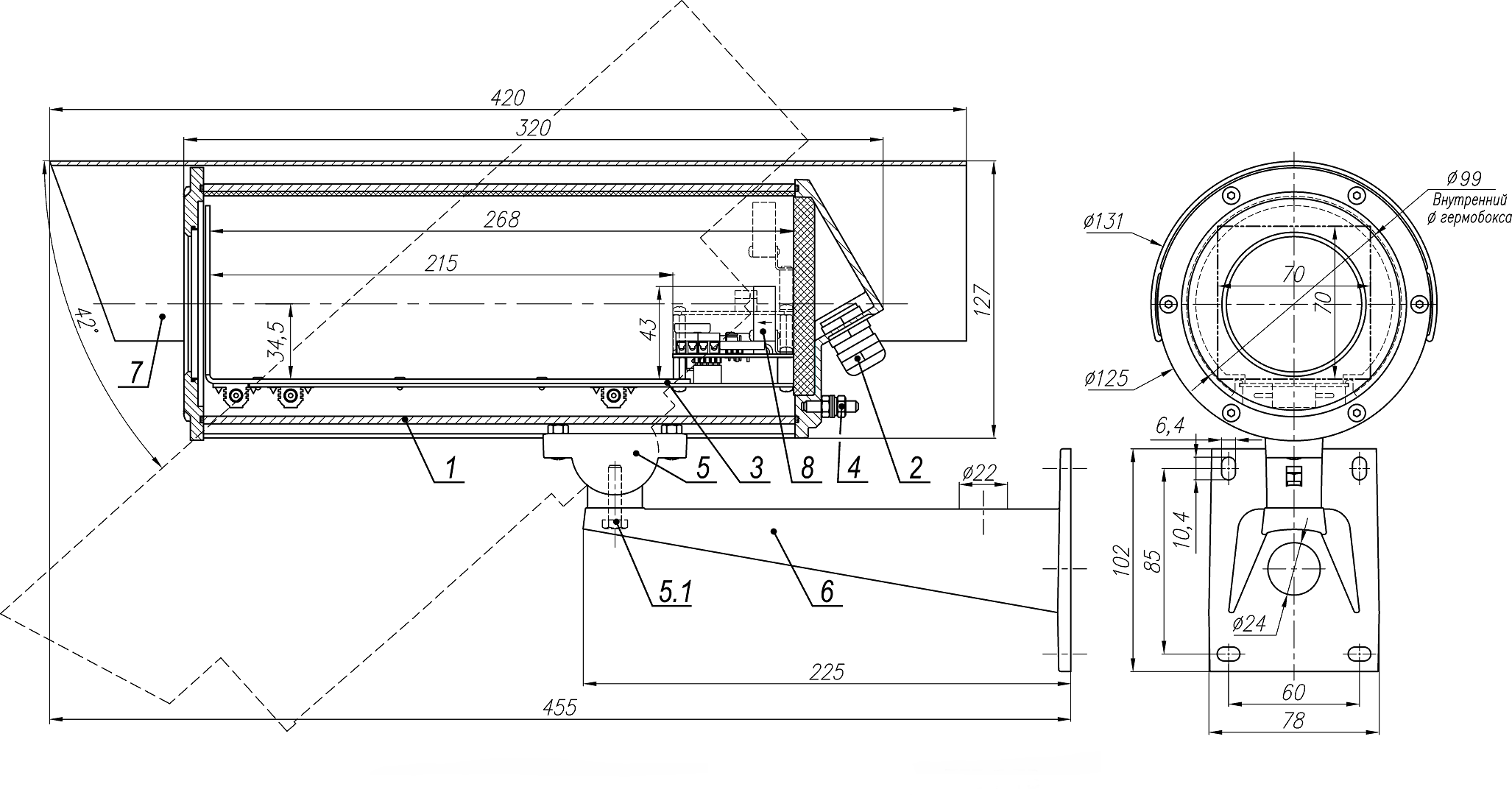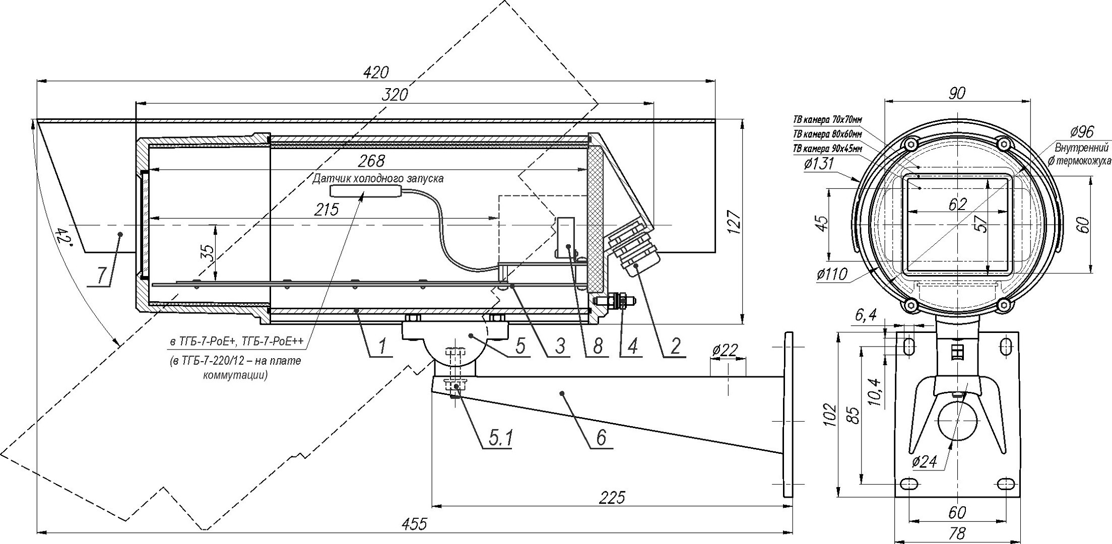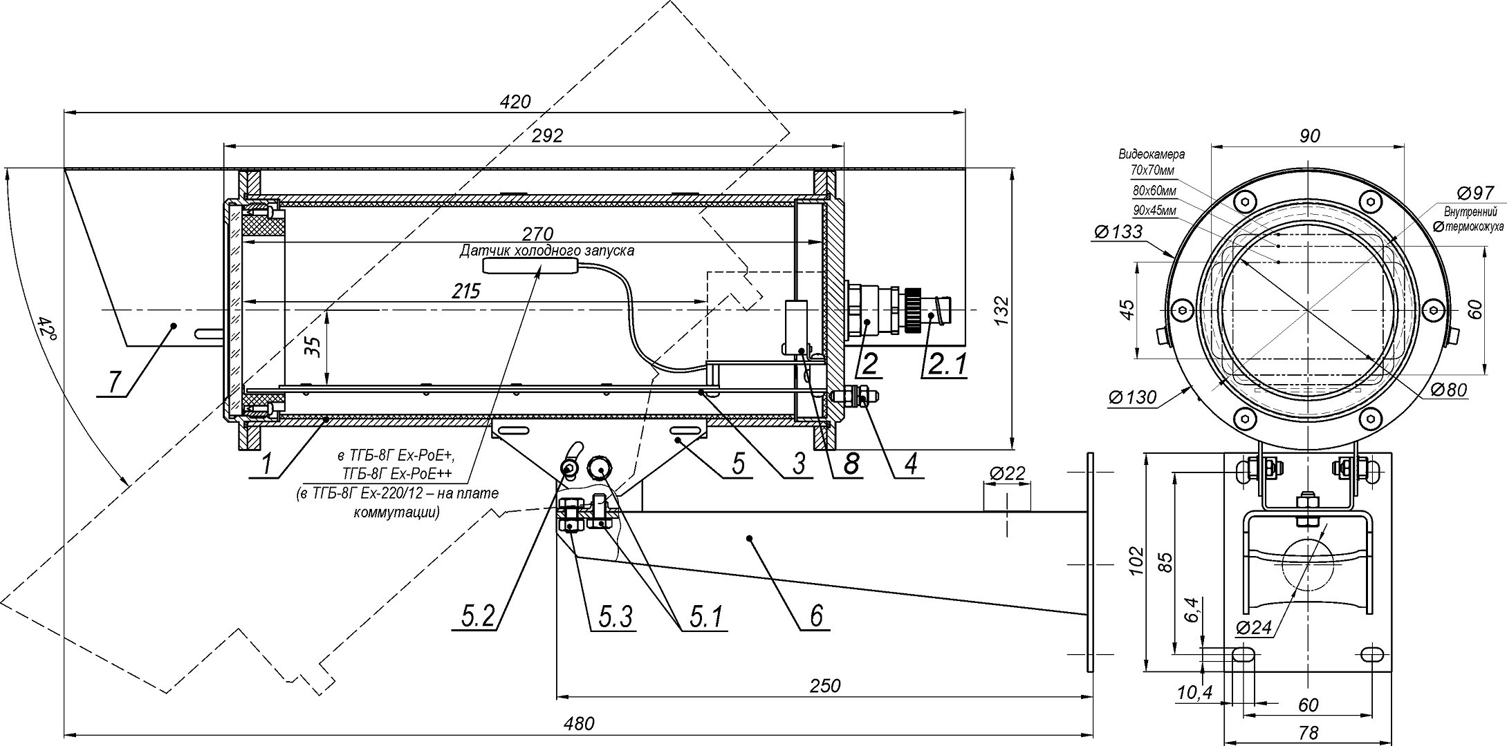 Габаритные размеры ТГБ-8Г Ex PoE+ (13003)