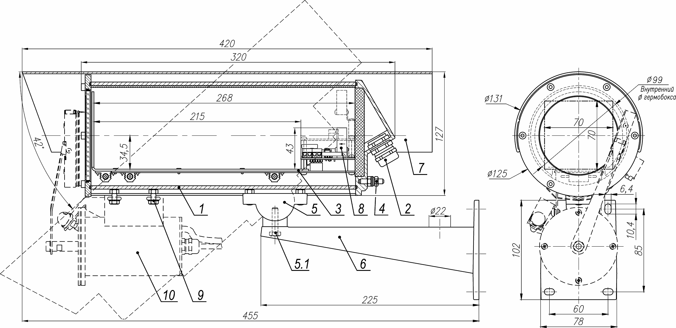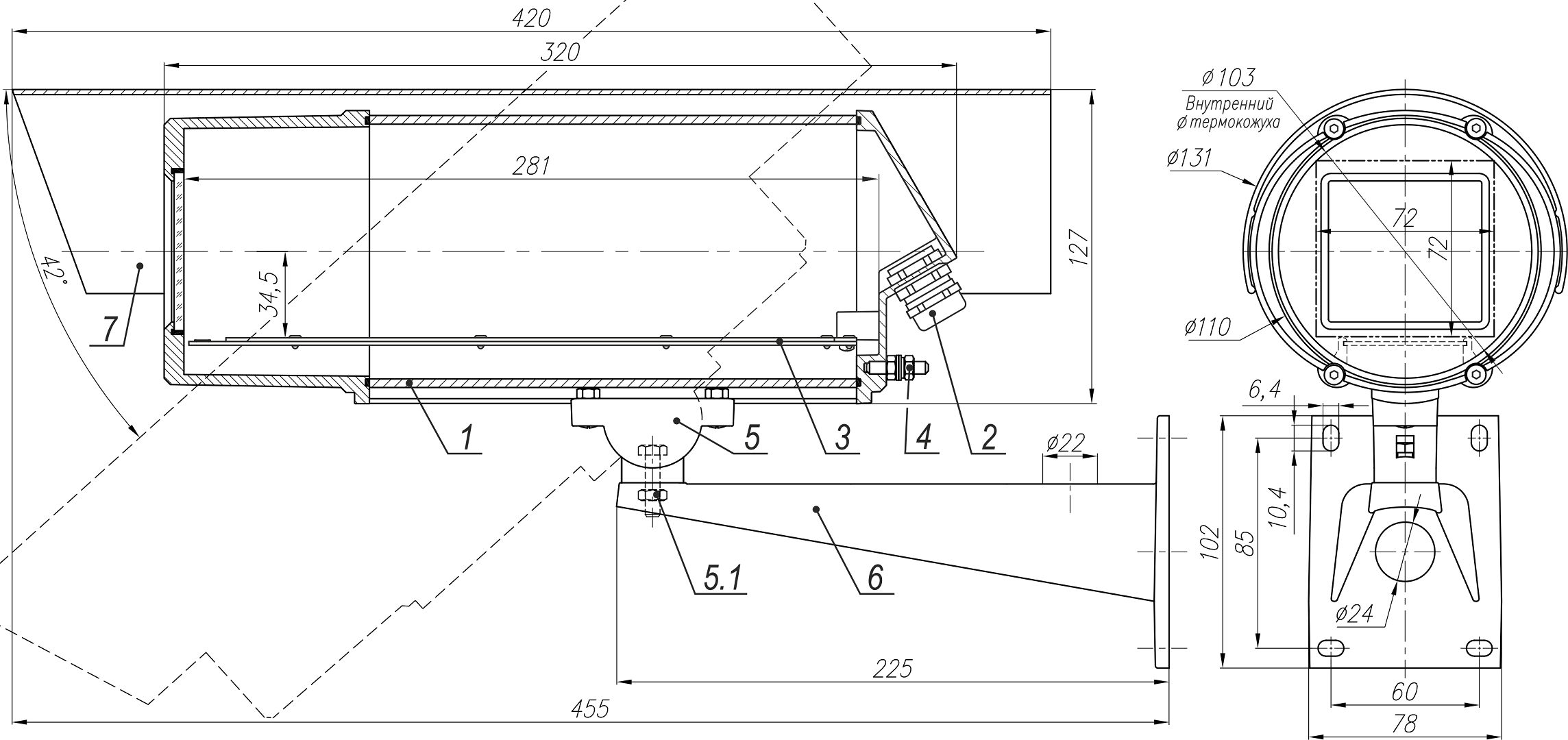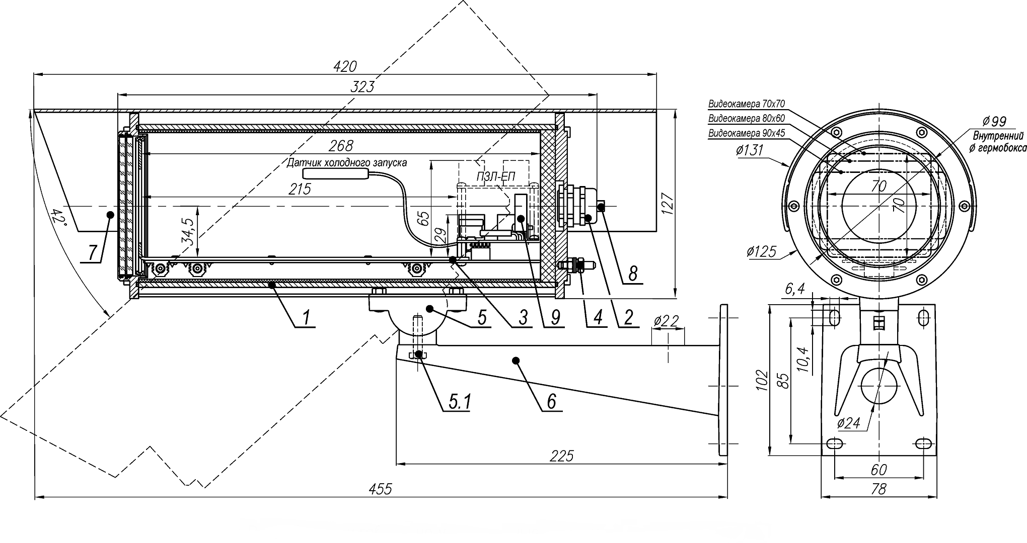 Габаритные размеры ТГБ-8Г Ex PoE+ (13003)