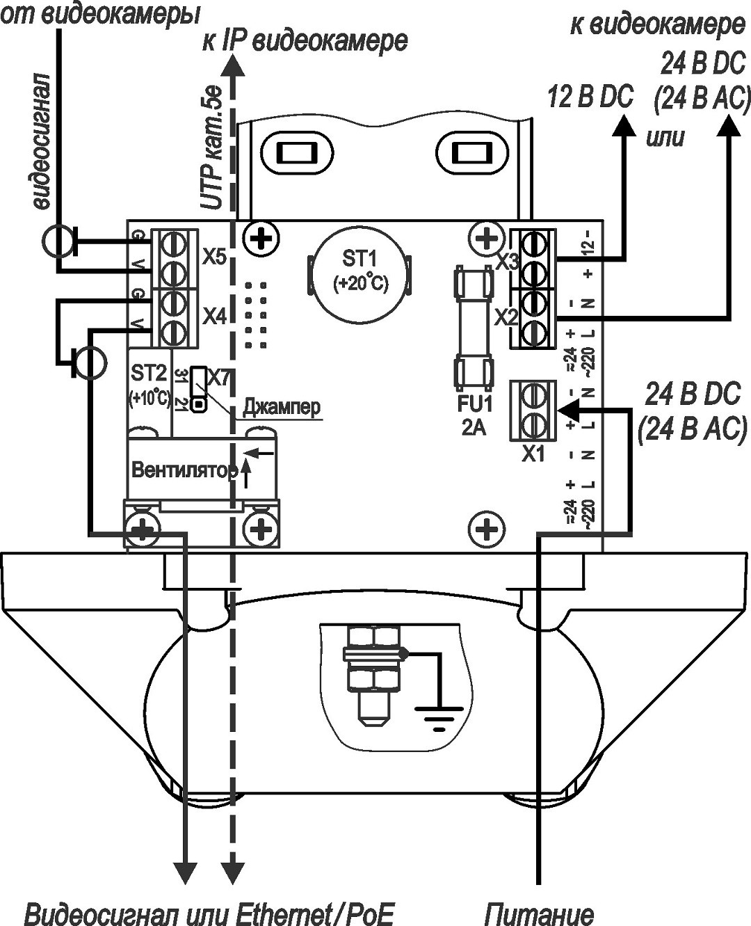 Схема подлючения ТГБ-7У PoE+ (01251)