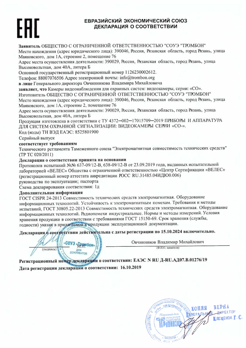 Сертификат Интеграция с пожарно-охранной системой Bolid