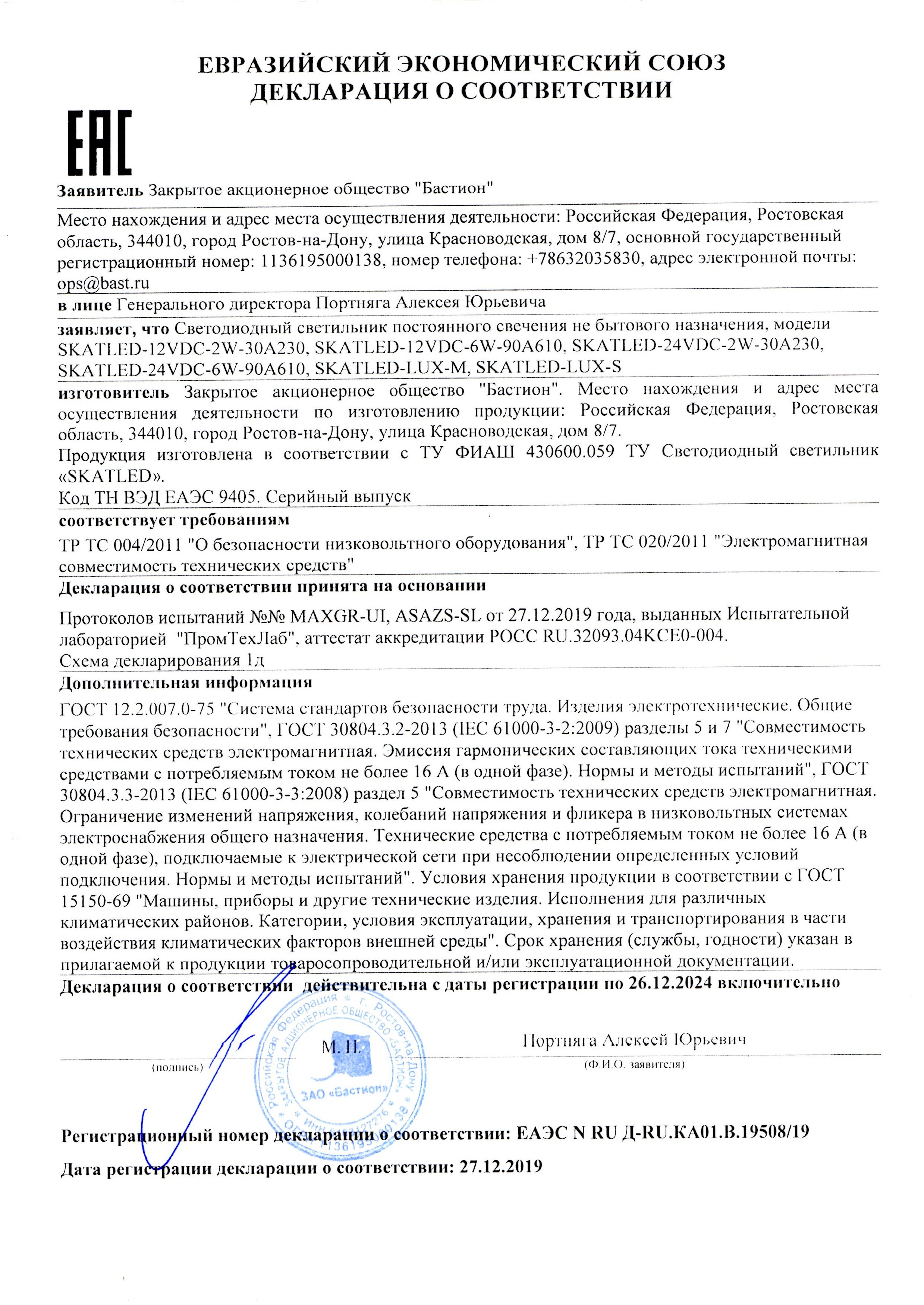 Сертификат соответствия SkatLED LL-308m