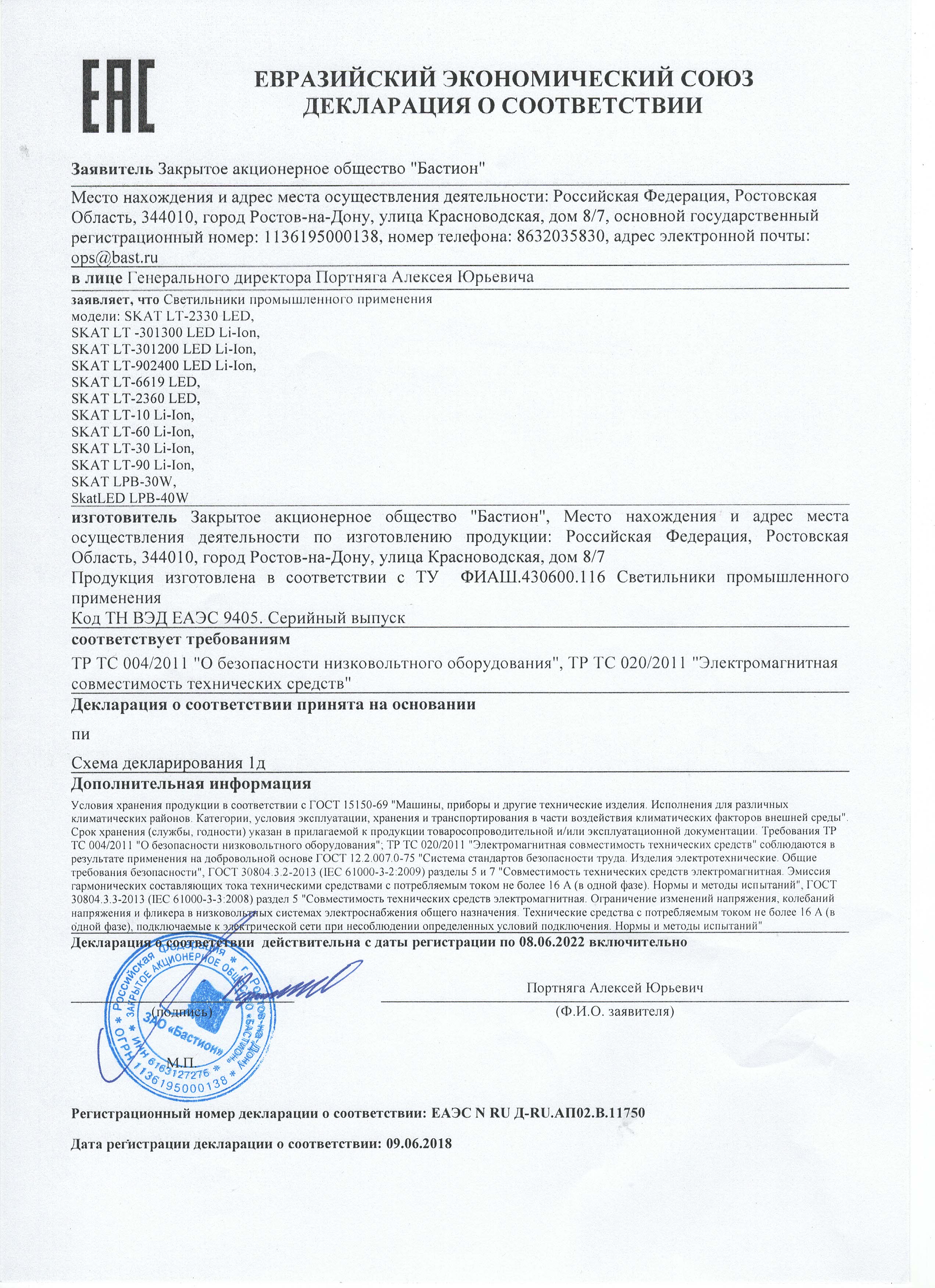 Декларация о соответствии SKAT LT-10 Li-Ion