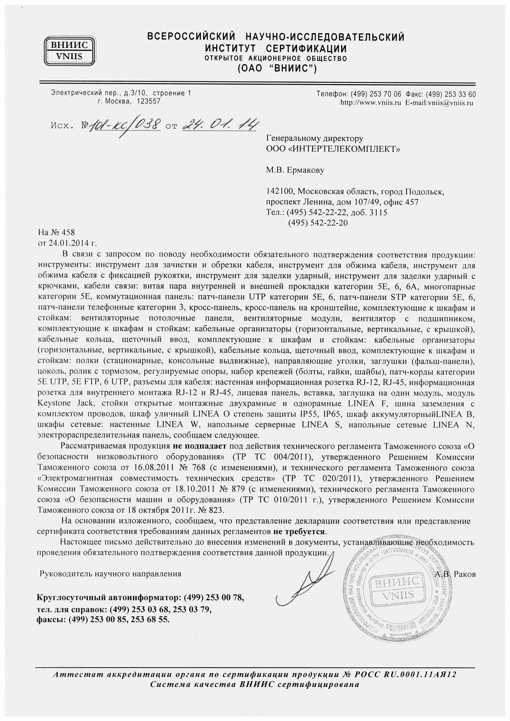 Сертификат транспортной безопасности TR-D2143IR6