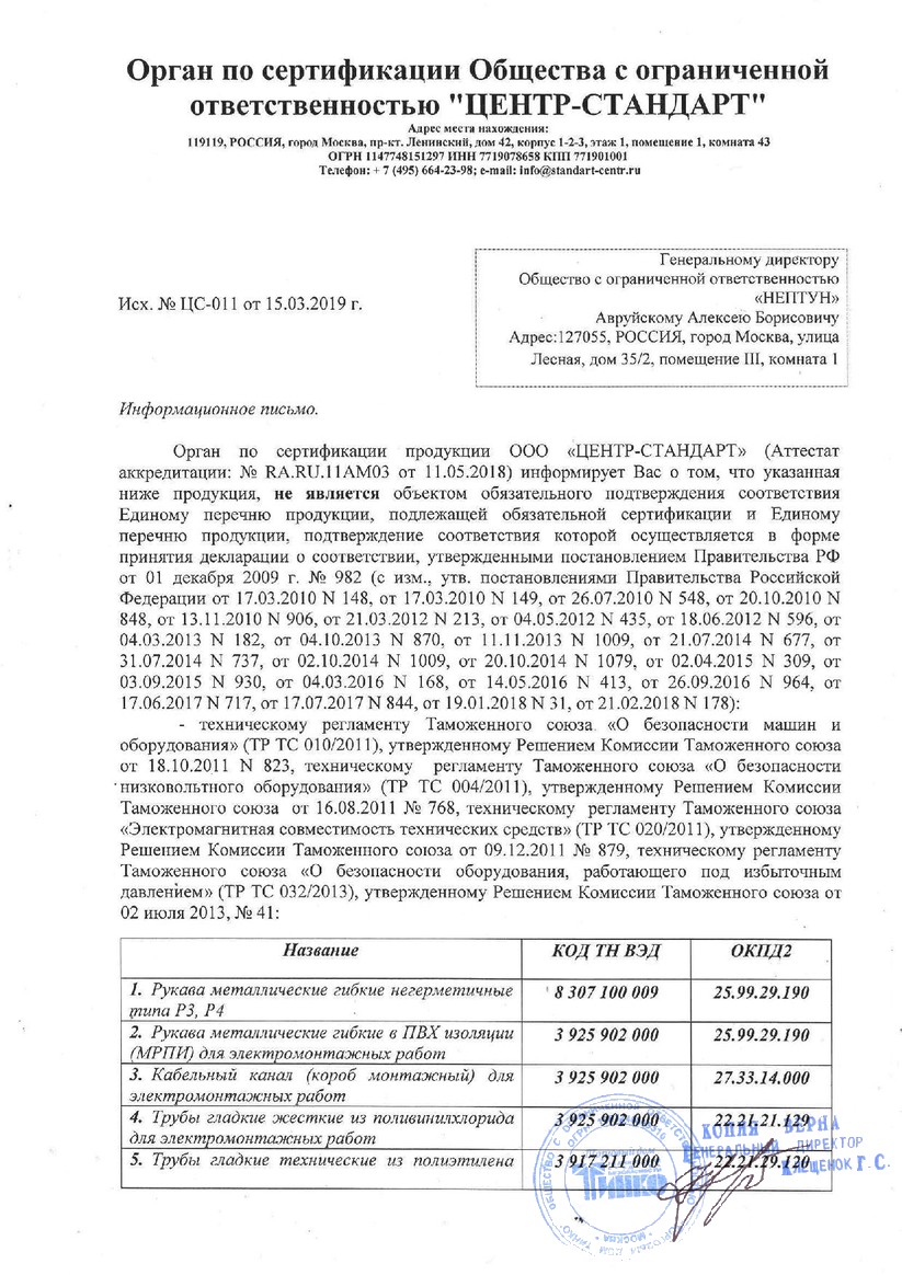 Сертификат Муфта соединительная для двустенных труб д125 Промрукав PR08.3100
