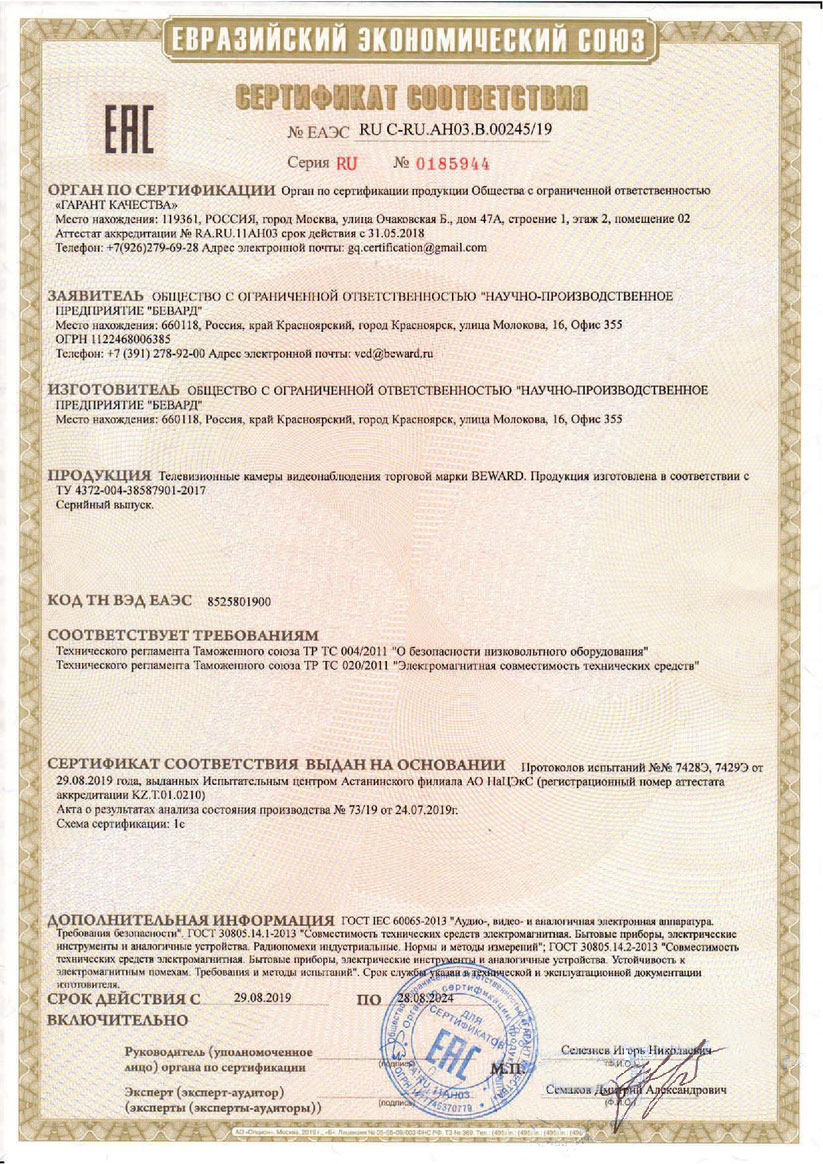 Сертификат соответствия TRASSIR DuoStation AnyIP 16