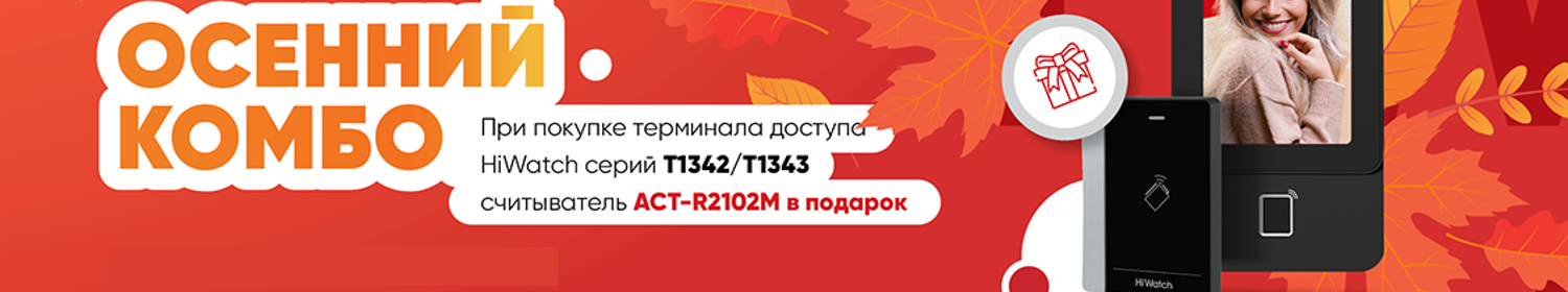 Вы можете получить бесплатно считыватель ACT-R2102M с SAP-кодом 302918581 при покупке терминала доступа HiWatch серии T1342 или T1343.