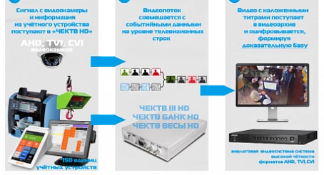 ЧЕКТВ HD – обновлённое семейство приборов событийного видеоконтроля, совместимое с новейшими форматами аналогового видеосигнала высокой чёткости HD-TVI, HD-AHD, HD-CVI любого существующего бренда. Интеграция прибора событийного видеоконтроля с различными системами видеонаблюдения – это отличная возможность предоставлять полноценные клиентоориентированные решения для банков, магазинов, кафе, баров, ресторанов, автомоек и автозаправок, салонов красоты и бутиков – везде, где в процессе работы предприятия задействован процесс оборота налично-денежных средств, процессы взвешивания и другие учётные операции.