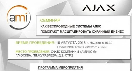 "Амиком" приглашает принять участие в семинаре "Как беспроводные системы AJAX помогают масштабировать охранный бизнес"