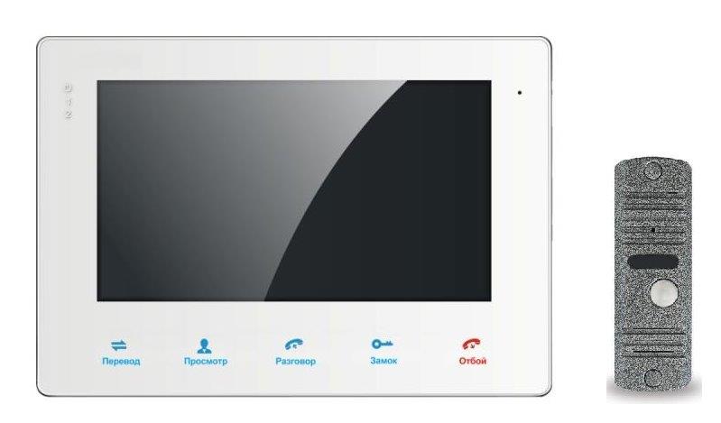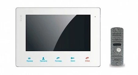 Характеристики монитора. Монитор имеет удобные сенсорные кнопки и цветной TFT LCD экран. К монитору можно подключать до двух вызывных панелей с четырехпроводной схемой подключения и трёх мониторов. Кроме того, можно дополнительно использовать до двух камер видеонаблюдения. Интерком с функцией Hands free позволяет вести общение в системе до 4х мониторов. Для записи видео монитор оснащён слотом под карточку памяти MicroSD ёмкостью до 32 Кб. Дистанционное управление замком осуществляется через вызывную панель.