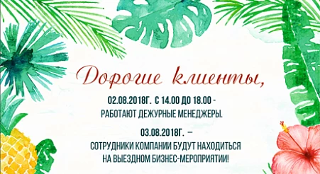 Дорогие друзья! В связи с проведением выездного бизнес-мероприятия 2 и 3 августа офис компании "Амиком" работает в сокращенном режиме!